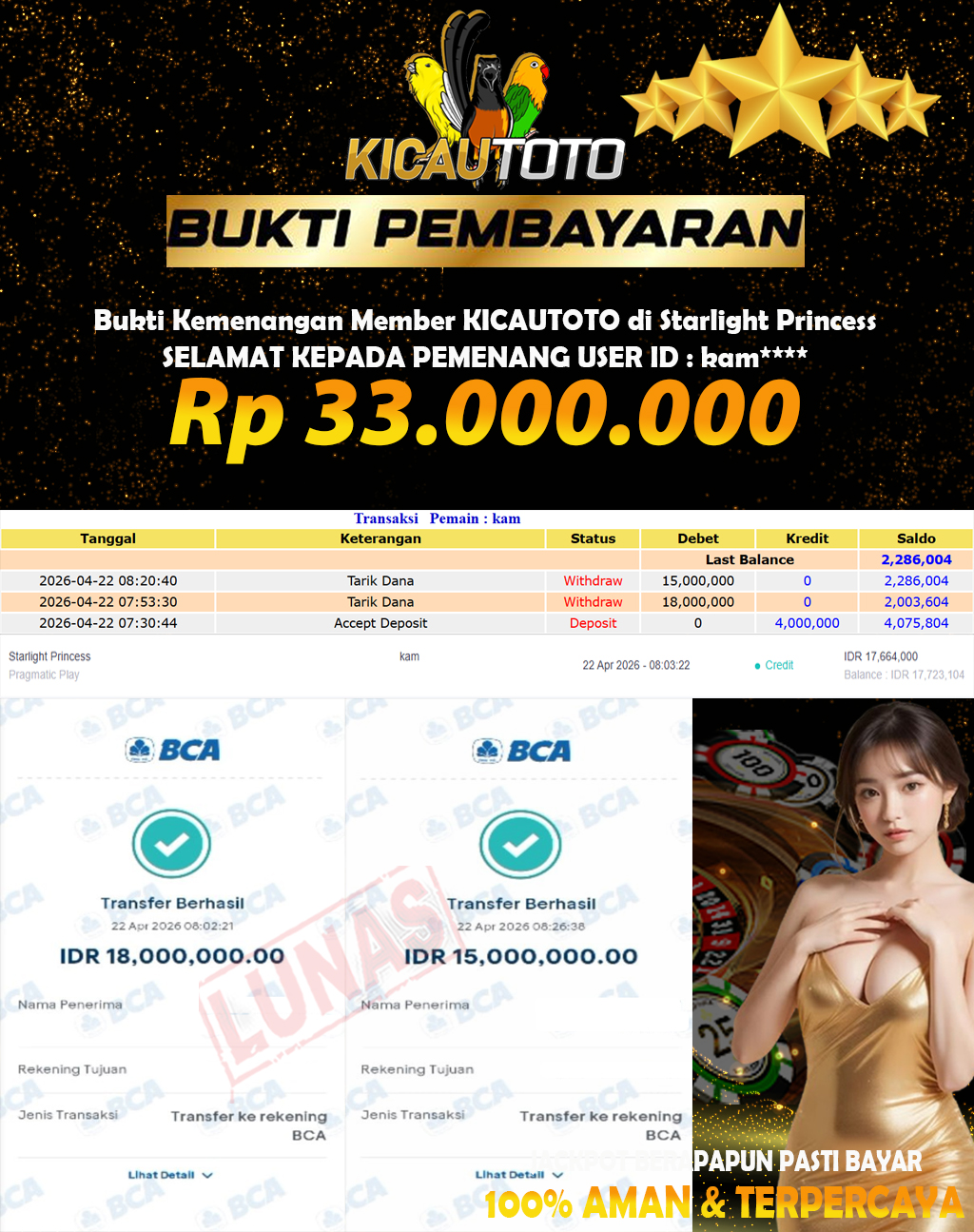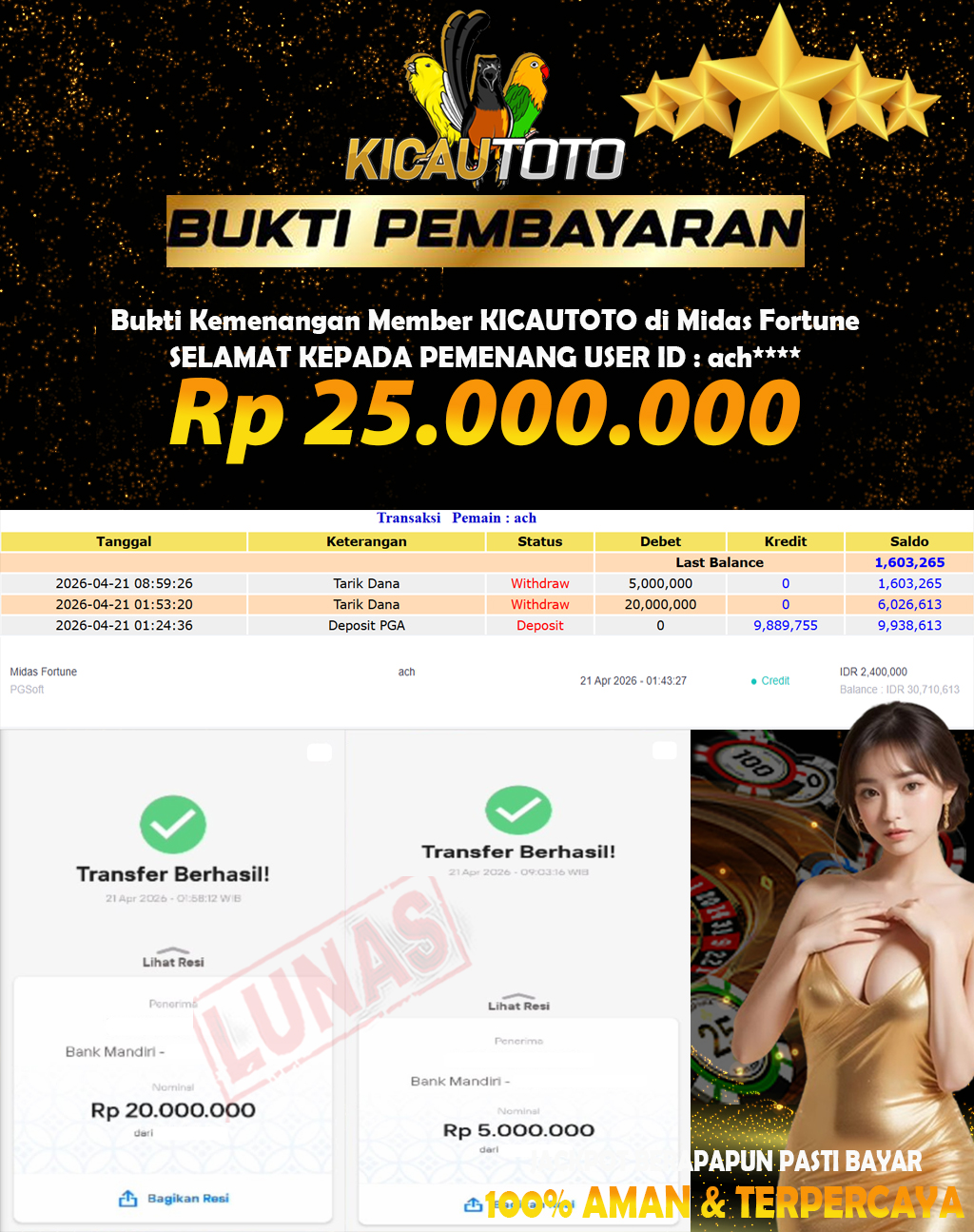 Bukti Pembayaran Lunas Player KICAUTOTO